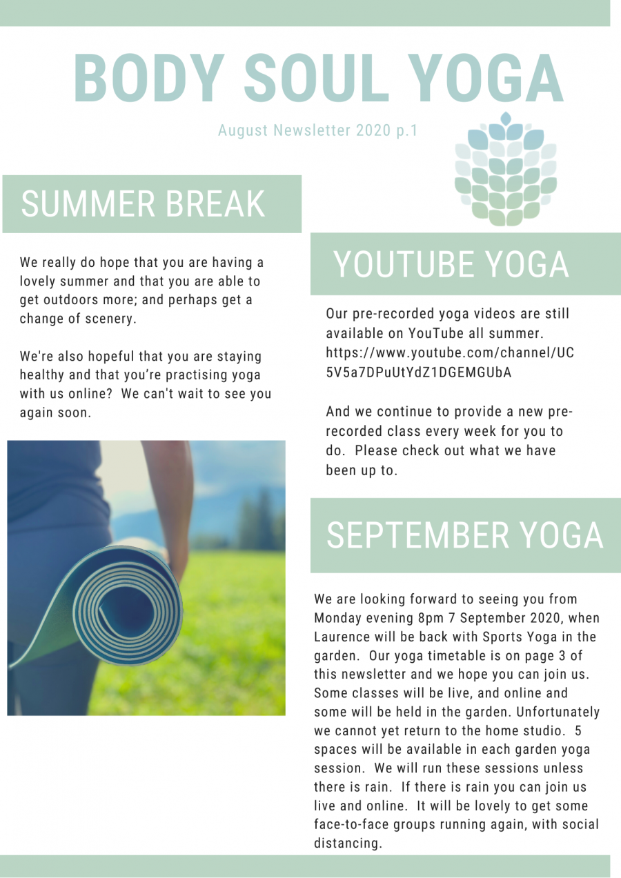 Body Soul Yoga Walton-on-Thames Yoga Newsletter August 2020