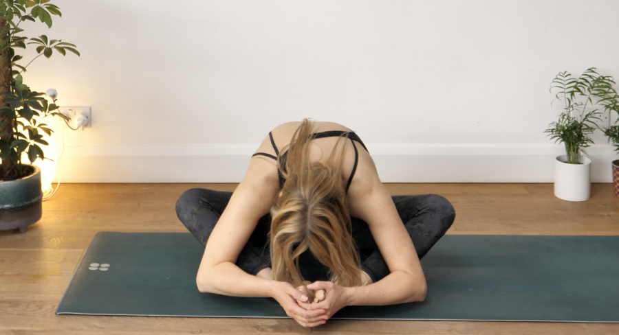 Our flowing sequence today is designed to work the whole body. Our focus is on the humble forward fold. These stretch out the back body. They are quietening and introspective and inward facing. So although today’s yoga practice leads to a strong open flow, it’s also a calming one. We start in child pose.